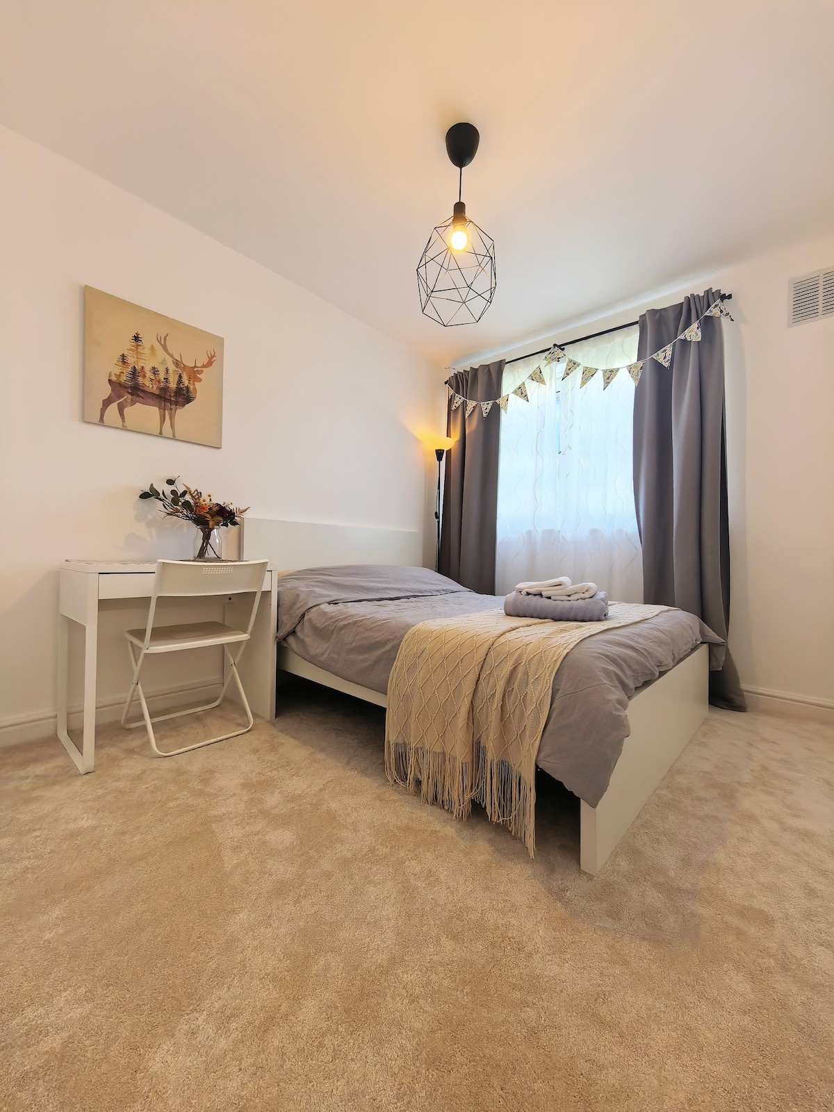 Habitación de 3 camas disponible en Roslin, muy cerca de los destinos turísticos Pentland Hills y Rosslyn Chapel Church, autobús directo al centro de la ciudad de Edimburgo con un tiempo de viaje de aproximadamente 1 hora en autobús.