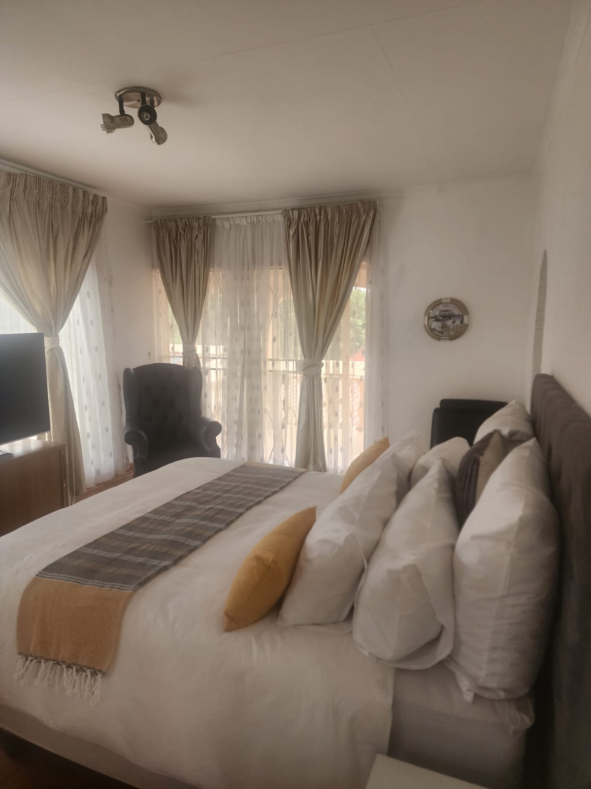 Disfruta de tu lujosa casa de 5 dormitorios con wifi gratuito, piscina y una zona braai, ubicada en el prestigioso barrio de Alveda Park, Johannesburgo. Junto a una vibrante Gold Reef City, Soweto, Mandela House, Joburg CBD, Sandton City, esta elegante morada ofrece comodidad y comodidad como ninguna otra. Disfruta de los servicios exclusivos que ofrece la propiedad y los alrededores, date un chapuzón en la piscina, desafía a tus amigos a un braai principal o relájate en el fresco patio cubierto.