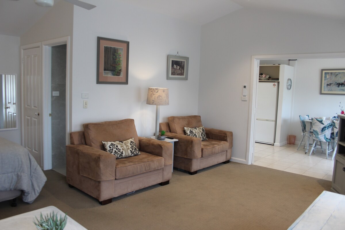 Situado cerca del río Goulburn, el apartamento está adosado a la parte trasera de nuestra casa. Ofrecemos aparcamiento fuera de la carretera bajo la cochera. Podemos atender a huéspedes adicionales con un sofá cama en el salón/comedor, también una cama plegable individual bajo petición. Hay una cuna portátil disponible. Se ofrece un desayuno continental básico con pan, zumo, cereales y condimentos. Hay té y café disponibles, instalaciones básicas de cocina. Zona de patio privado al aire libre.