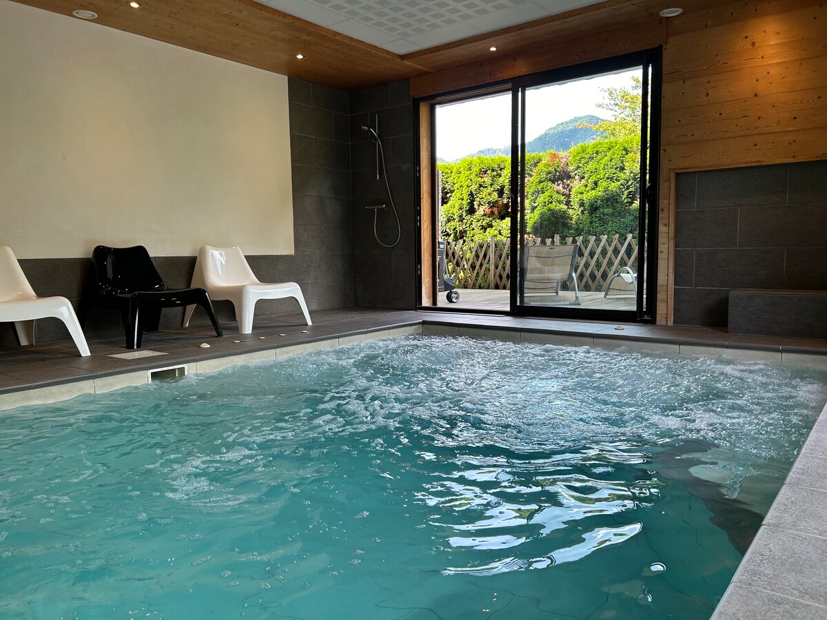 🏡Our little chalet is waiting for YOU ! 🏡 Warm, bright, and functional, it will be your charming little haven during your getaway to discover our beautiful region ! Perfect location near A40 motorway: reach Geneva in 15 min, Annecy in 30 min, Chamonix in 45 min. Ski resorts: Les Brasses 10 min (ideal for beginners/attractive lift pass) + Les Gets, Avoriaz, Flaine, Clusaz... en 30 min. In a village with all local shops. SAUNA in the basement and JACUZZI in the adjacent garden (extra charge).