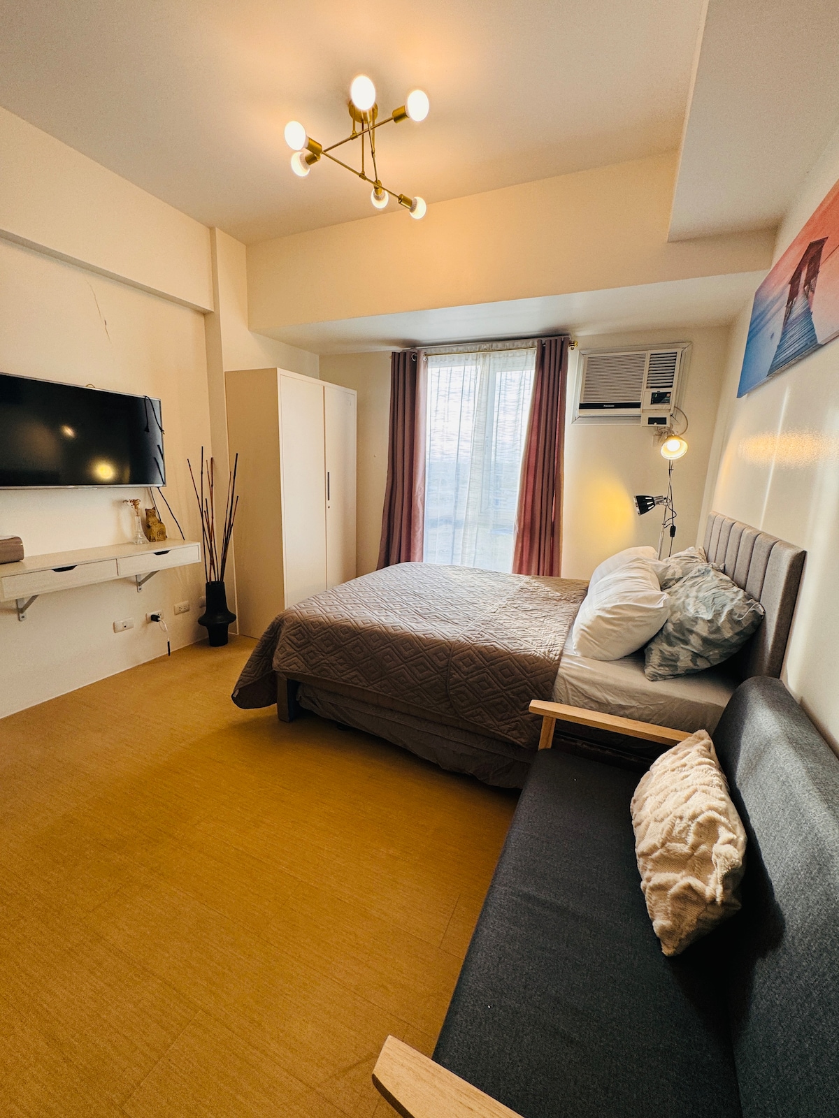 La unidad está en One Oasis, Filinvest, ubicada en el corazón de la ciudad y a poca distancia a pie del centro comercial Lim Ketkai y cerca de hospitales, escuelas, iglesia y mercado. Comunidad totalmente vallada y cerrada con seguridad las 24 horas. Las comodidades incluyen piscina para adultos y niños, parque infantil, cancha de baloncesto, gimnasio y zona de entretenimiento. La unidad cuenta con wifi y TV inteligente.