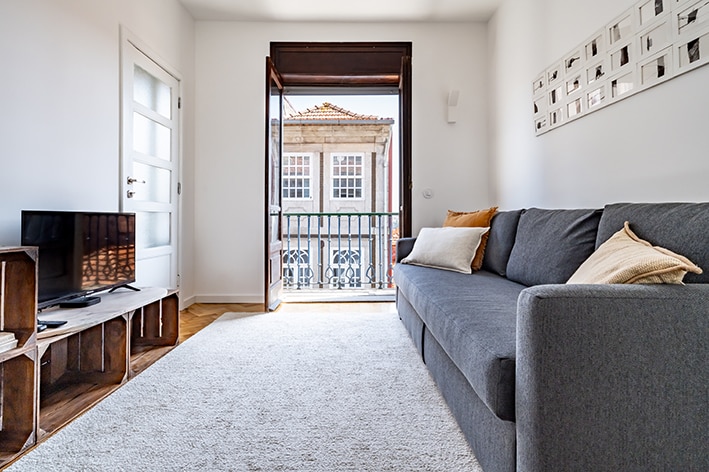 Stylish studio with air conditioning (hot & cold) set in a historic building on Mouzinho da Silveira Street, one of Porto’s most iconic streets, just steps from the Douro River and all major sights. Step back in time while admiring the soaring ceilings and Juliette balconies, where historic character and modern comfort come together seamlessly. Sit back with a glass of Port wine and plan the next day’s discoveries — you may find yourself wishing to stay in Porto forever.
