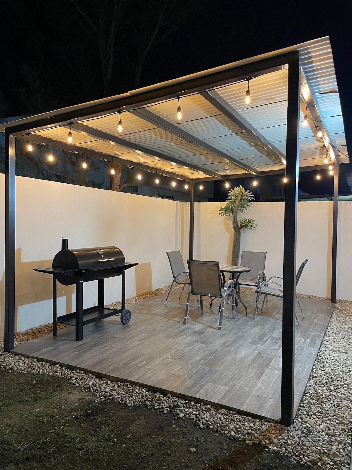 Casa Independiente con buena ubicación, a dos cuadras de la ave. principal que te lleva viajando en coche al centro de Cd. Madero en 5 min, a la Playa Miramar en 15 min, al centro Histórico de Tampico en 10 min, a la Laguna del Carpintero en 7 min. Cuenta con cochera techada, una recamara con baño completo, cama matrimonial, Mini Split, área de trabajo, internet y TV Smart 43”. Sala comedor con abanicos de cielo y un sofá cama con opción para dos huéspedes adicionales, cocina y lavadora.