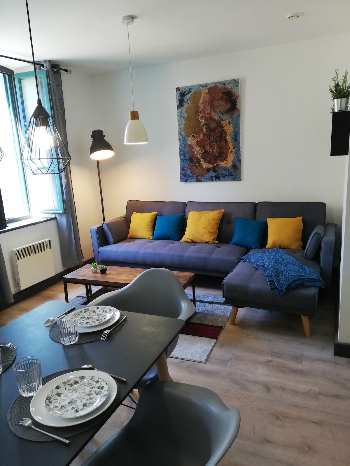 En nuestra gran propiedad le ofrecemos un apartamento para reunirse en pareja, en familia, entre amigos. Se compone de una sola sala de estar con un rincón de dormitorio con cama de 160×200, una cocina equipada, un rincón zen con el jacuzzi, un rincón de TV con sofá cama, un baño con ducha y un espacio exterior. Posibilidad de reservar cestas de comida de 50 € para 2 y desayunos de 7 €/persona. Cerca de la ciudad y del canal, a 10 minutos del centro de la ciudad.