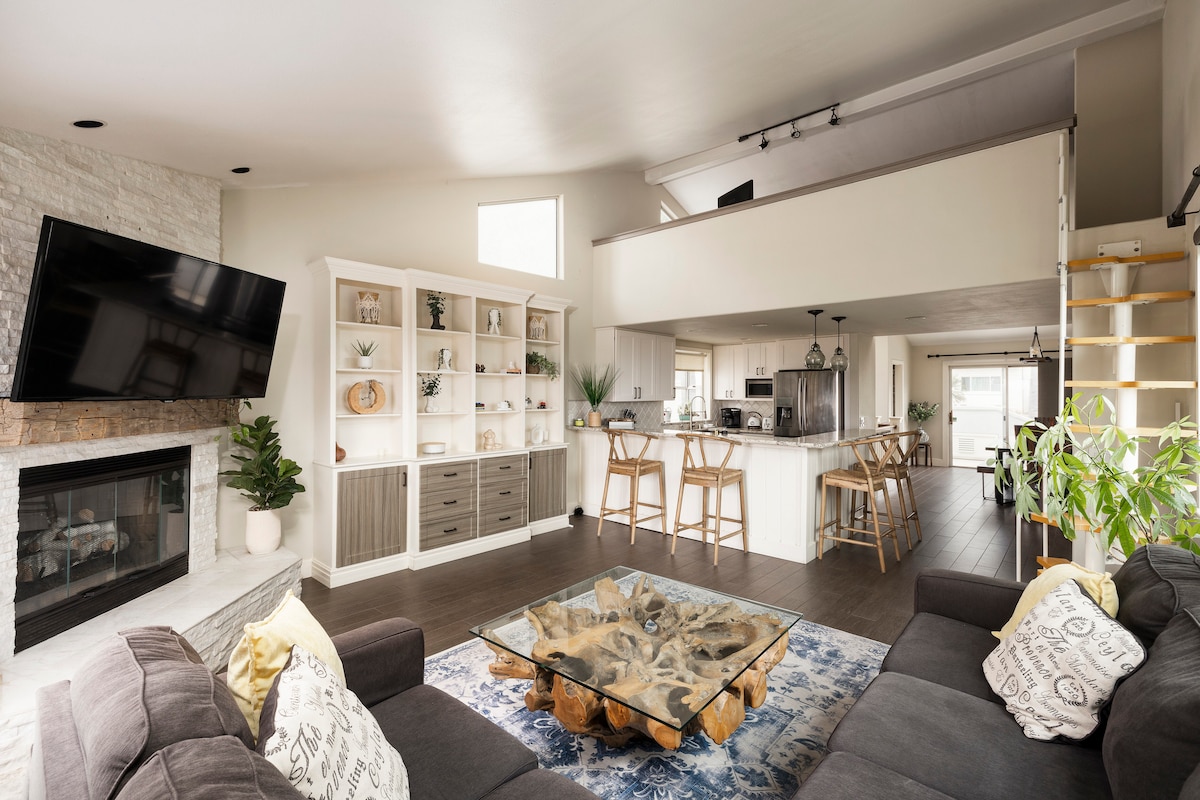 Ubicada en el corazón de Pacific Beach, esta moderna casa de playa ha sido completamente remodelada y rediseñada para que tu estancia sea inolvidable. Diseñada pensando en la comodidad y el entretenimiento. * Retiro privado al aire libre con cocina, jacuzzi para 6 personas, chimenea. * AV central * Sistema de sonido controlado por voz, televisores 4K en todas las habitaciones. * Baños perfectos. * Bicicletas, tablas, toallas de playa y juguetes. * ¡A poca distancia a pie de cafeterías, yoga y gimnasios, restaurantes, entretenimiento y tiendas!
