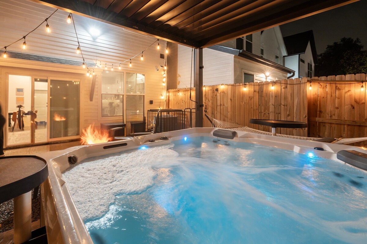 Relax in a private, year-round covered hot tub. The Landing Pad — a modern 3BR, 2.5BA home with 6 real beds, built for comfort. Ideal for families, work trips, and small groups (up to 12 guests). Located on a quiet street 10 min to Downtown, 5 min to the Medical Center, and under 5 miles to NRG Stadium (Host of the 2026 World Cup). Enjoy a fire pit, BBQ grill, fast Wi-Fi, smart TVs, and a fully stocked kitchen. Easy self check-in, free parking, and Superhost support. No parties or events.
