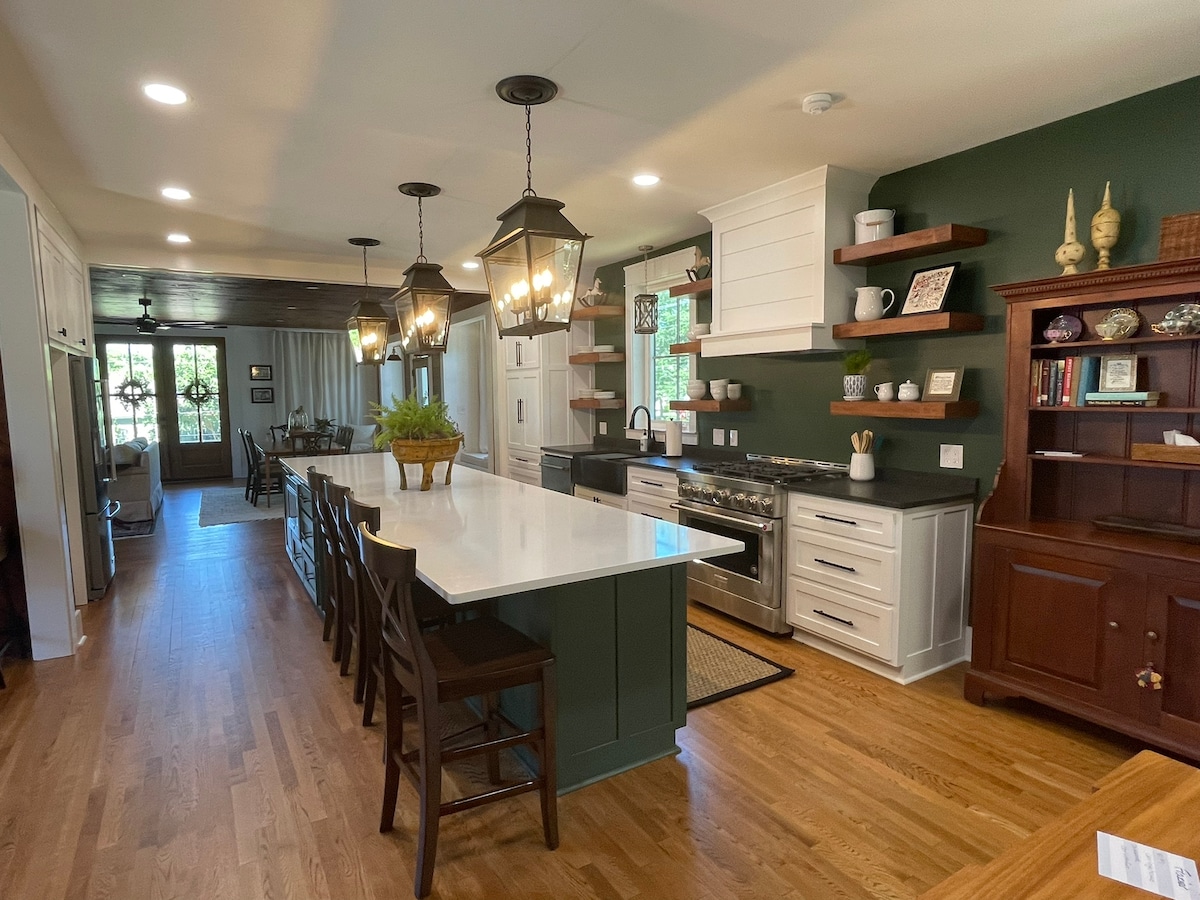 La Carriage House era el granero y almacén de carruajes de la casa de la finca de al lado, construida en 1906. Recién reformada, la casa cuenta con 4 dormitorios y 3,5 baños. La preparación de comidas o el servicio de buffet es fácil en esta espaciosa cocina que cuenta con una isla de 15 pies. La madera expuesta en la casa fue descubierta durante la renovación y es totalmente original de la casa. Los leños de gas en el estudio hacen que el espacio sea muy acogedor para una visita en invierno. A 1 milla del centro histórico de Corinth y de todo lo que ofrece.