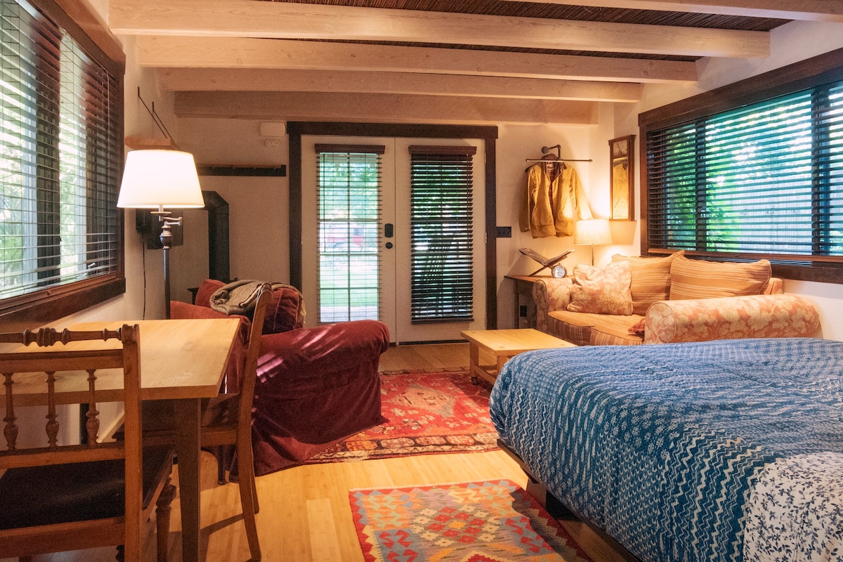 Remodeled one bedroom apartment in the University area built in the early 1900's. The apartment is above the garage (steep stairs are involved) with windows on three sides. Private entrance, overlooking a cottage garden with a sitting/dining area. Designer kitchen, cozy and bright space to study, vacation or explore Missoula. The bedroom has a new queen bed. The main apartment has a twin sized fold-out couch. Long term stays contact for pricing.