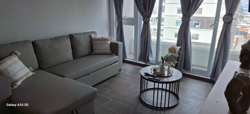 Disfruta de una experiencia elegante en este edificio de apartamentos, céntricamente ubicado, que cuenta con tres habitaciones y dos baños. Este moderno apartamento es ideal para familias, parejas, amigos o personas viajando solas. Cerca de centros comerciales, supermercados, hoteles y restaurantes. Excelentes amenidades en el edificio, como gimnasio totalmente equipado, área de juegos infantiles y áreas de descanso. Incluye 2 espacios de estacionamiento gratuitos.