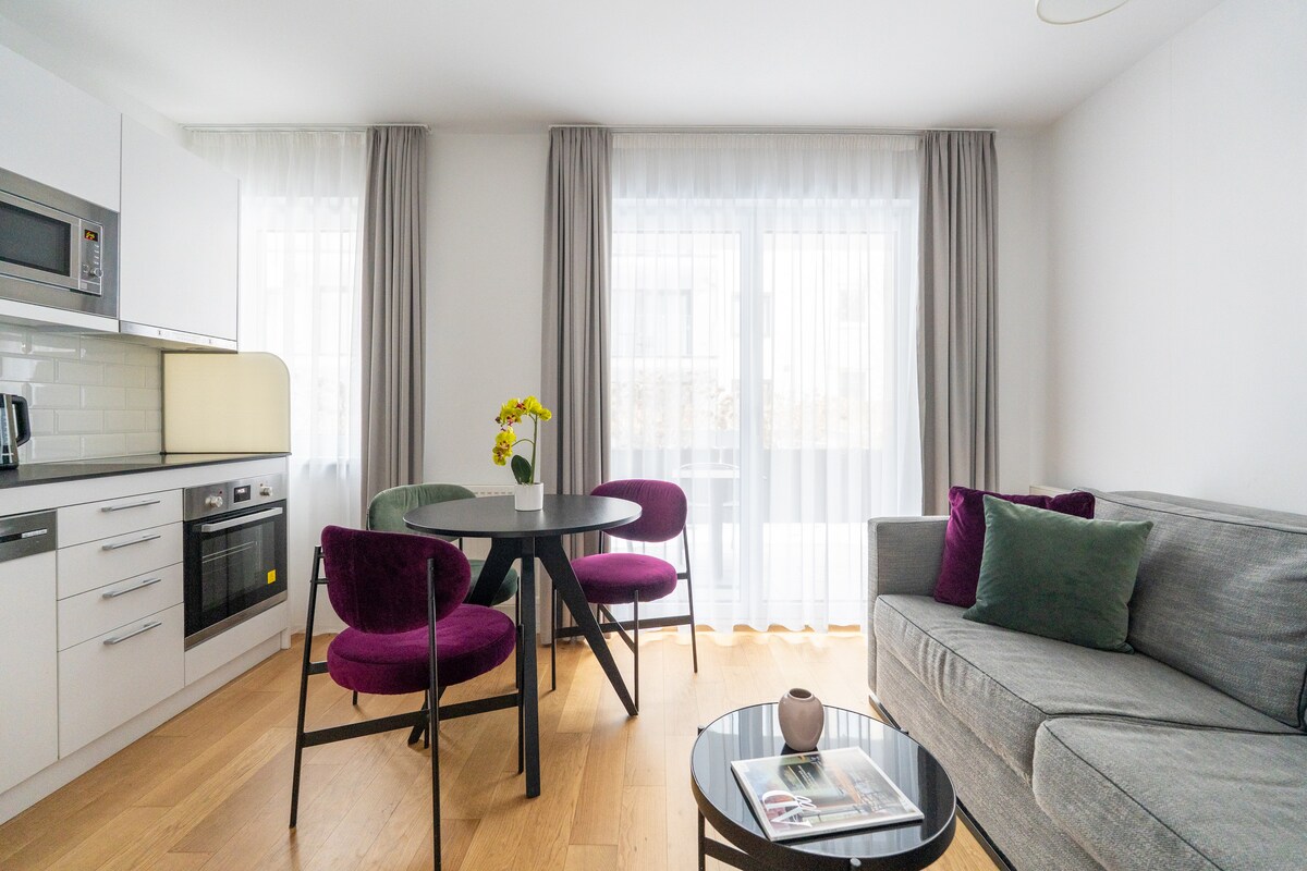 Welcome to our Artful 1BR Suite, located directly in front of the U1 metro station Altes Landgut. Stephansplatz and Vienna’s city center are just 10 minutes away by metro. Key Highlights: • Professionally managed property • Paid garage parking available on the premises • On-site amenities: luggage lockers, laundry room & lobby