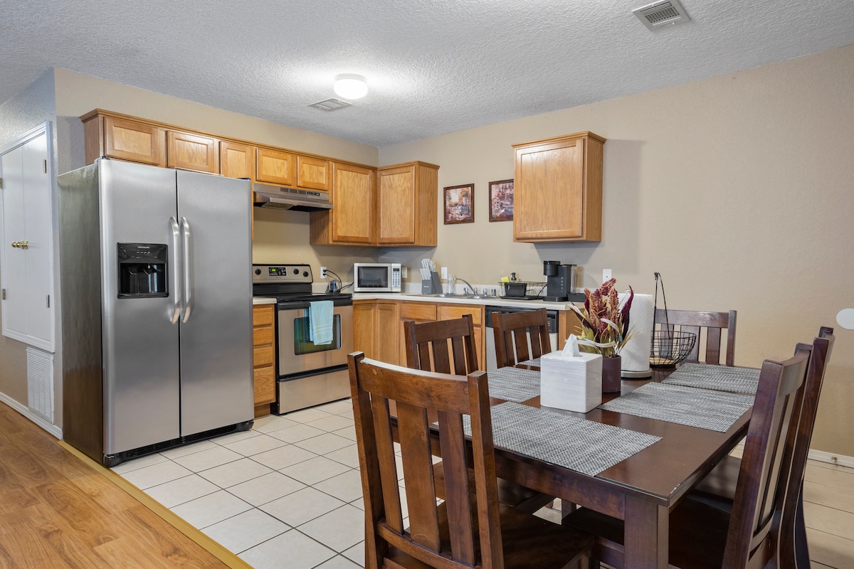 Relax in this central, peaceful 4BR, 2BA home. ** New fire-pit / hammock area** Ideal for families and work crews, this home offers plenty of parking, private backyard with a deck, grill and fire pit. Enjoy a cozy park with a playground and grills a few blocks away. Inside, a fully stocked kitchen awaits, with a coffee bar, ground coffee, creamer, sauce & syrup. Pack your favorite coffee pods to enjoy the available Keurig. Downtown dining, cafes, and nightlife are just a 5-minute drive!