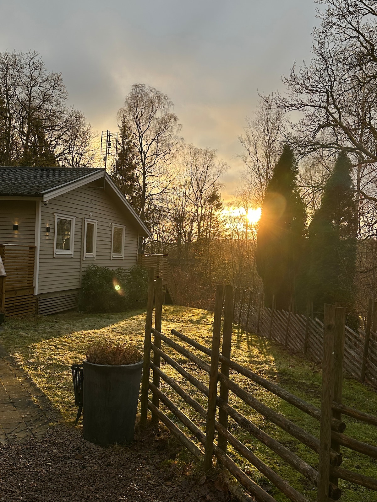 Mitt i naturen men bara 20 min från Göteborg hittar ni denna idyll. Här bor ni bekvämt i en nybyggd gäststuga med kamin, vedeldad bastu och badtunna. Runt hela huset går den stora altanen. Nedanför är en mysig stig (50 m) till den privata bryggan för ett morgondopp. Ta en tur med roddbåten och pröva fiskelyckan eller låna våra två SUPar. I direkt närhet finns vildmarken med gott om stigar, bl.a. Vildmarksleden, för vandring, löpning och mountainbike. Flygplats: 8 min Chalmers golfbana: 5 min