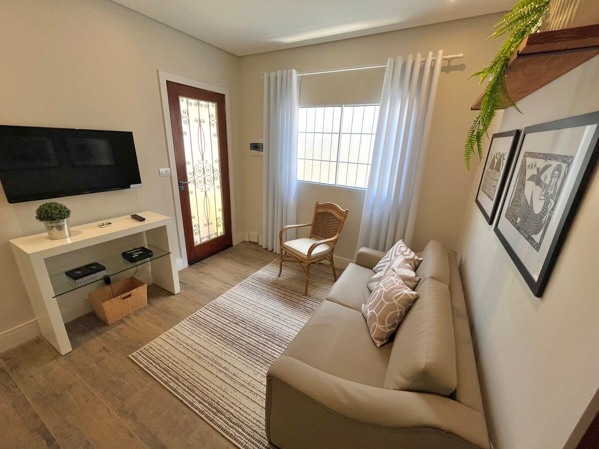 ¡Te damos la bienvenida a Aconchego, el lugar más tranquilo y mejor ubicado de la ciudad! Nuestro espacio fue diseñado para ofrecer una estadía cómoda y práctica, con todo lo que necesitás para sentirte como en casa. Tenemos 5 personas que ofrecen TV inteligente, wifi, espacio de oficina en casa, cocina completa con airflyer y sandwichera, lavadora, ropa de cama y baño, y un espacio cubierto exclusivo para los huéspedes. Y, sin embargo, tenemos golosinas para que disfrutes aún más de tu estancia. Quedamos a la espera de tu llegada 😊