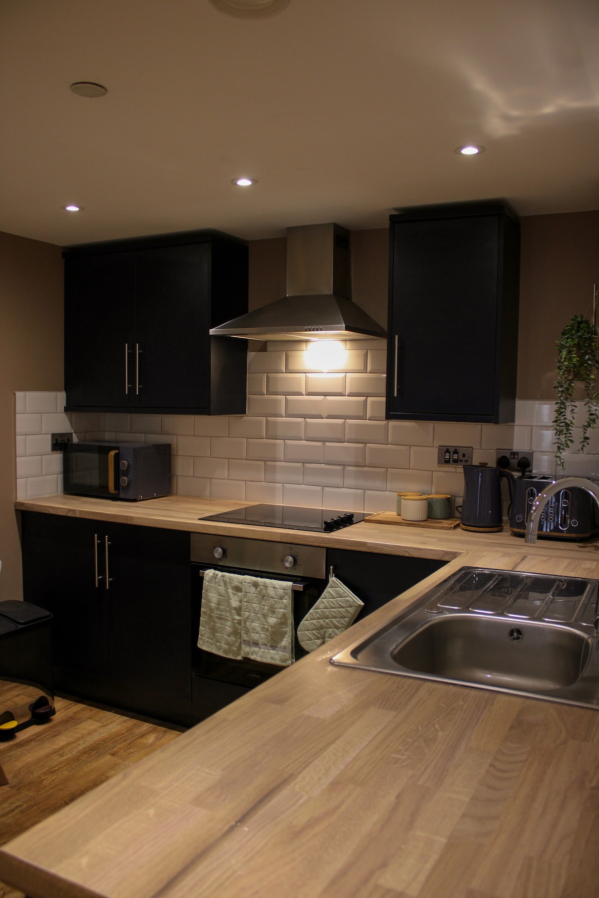 Piso victoriano moderno de alta gama. Acceso a un hermoso jardín de la ciudad, con gran terraza, muebles de exterior y barbacoa. El apartamento es de planta abierta. Piedra expuesta, cornisa ornamentada, cocina victoriana ornamental, cocina y baño modernos. Terraza grande y jardín con parrilla, compartidos con los propietarios. Ubicación en el centro de la ciudad. A 15 minutos a pie de la estación y el centro de la ciudad. 2 dormitorios. Tené en cuenta que se accede al dormitorio 2 a través del dormitorio 1.