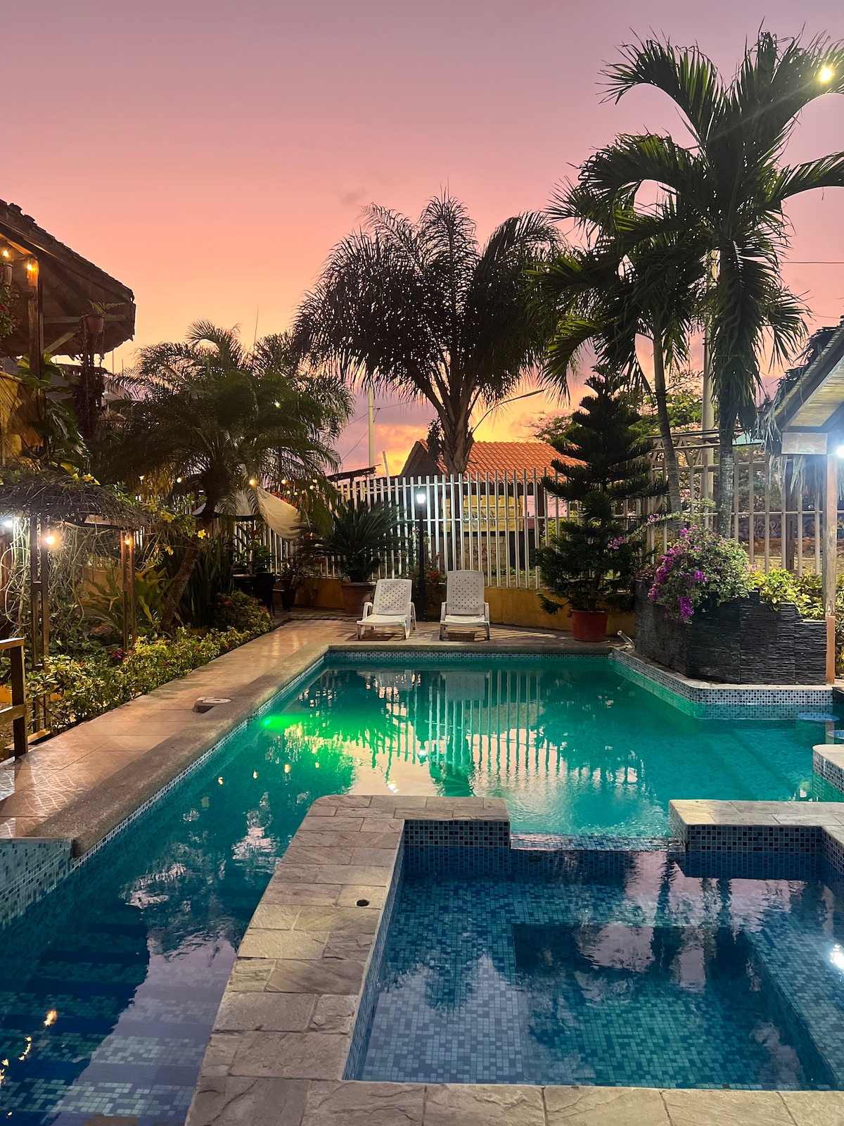 *INCLUYE:* ✅ Matrimoniales y familiares ✅ Wifi 📶, A/C 🧊, TV 📺, baño privado 🚿 ✅ Piscina bar temperada 🏊♀️ (8h-00h) 🍹 ✅ Desayuno americano incluido🍳 (8h-10:30h) SOLO fines de semana y feriado ✅ Pet friendly 🐶 (+$10) ✅ Parqueo techado 🚘 ✅ A solo 2 min de la playa caminando 🕒 Check-in 13.00h / Check-out 12.00h