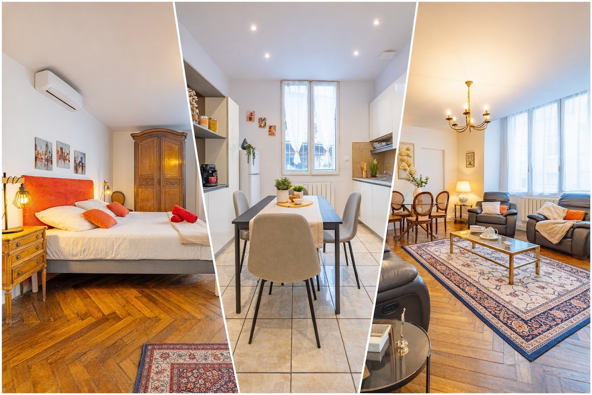 T2 nuevo equipado con aire acondicionado reversible a 400 metros de la estación de tren. (2.ª planta) Parada de autobús cercana - Varios restaurantes a dos pasos del alojamiento (Le Gueuleton / Restaurante Asiático y otros) - Acceso rápido al centro de la ciudad. Funcional y muy cálido, también encontrará tranquilidad y comodidad durante su estancia. TV conectada con 90 canales y Netflix. Wifi de acceso gratuito. El apartamento es para no fumadores, ¡pero hemos pensado en usted! Una terraza cubierta está disponible :)