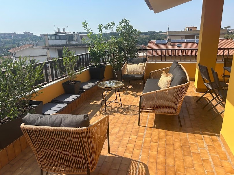 Inmerso en la vegetación del parque Veio, a 10 minutos en coche de Corso di Francia, apartamento con entrada independiente, jardín con patio y sofás ideales para relajarse después de un día de compras en el centro y después de admirar los emblemáticos monumentos de Roma, todos accesibles y bien conectados por metro ligero con salida desde Piazzale Flaminio- Piazza del Popolo hacia Prima Porta, y en autobús. 035. IMPUESTO TURÍSTICO DE € 6.00 POR DÍA POR PERSONA