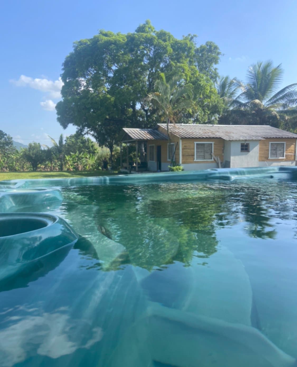 Finca con todas las comodidades a 25 minutos de Santo Domingo. Puede ser para estadías largas o cortas donde caben 12 personas (4 habitaciones con aire más un sofá cama en la sala con abanico de techo) o para pasadias de grupos (confirmar cantidad de personas antes de reservar). Tendrá a su acceso la casa, el gazebo con baño completo, wifi, Tv, Billar, equipo de música, piscina, jacuzzy con calentador, bbq de carbón, cancha de basketball, mesa de ping pong, juegos, amplios jardines y la granja