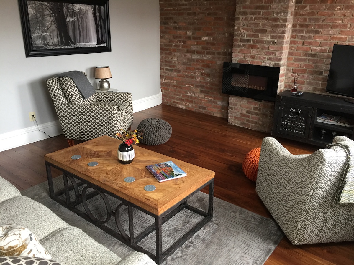 ¡LA MEJOR UBICACIÓN DE HERMANN! JUSTO EN LA CALLE 1ST. Tranvía al otro lado de la calle. A poca distancia a pie de la cervecería, la bodega y granja Hermannhoff, tiendas, restaurantes, bares, etc. Estación de tren a 1 manzana de distancia. Cerca del sendero Katy Trail. El loft Silver Moon es acogedor, con una bonita decoración y cómodas camas con baños limpios, cocina equipada y una acogedora sala de estar. Espacioso y muy limpio. Patio y chimenea. 2 cupones de desayuno en Stomp'n Grounds como agradecimiento para que los utilices durante tu estancia.