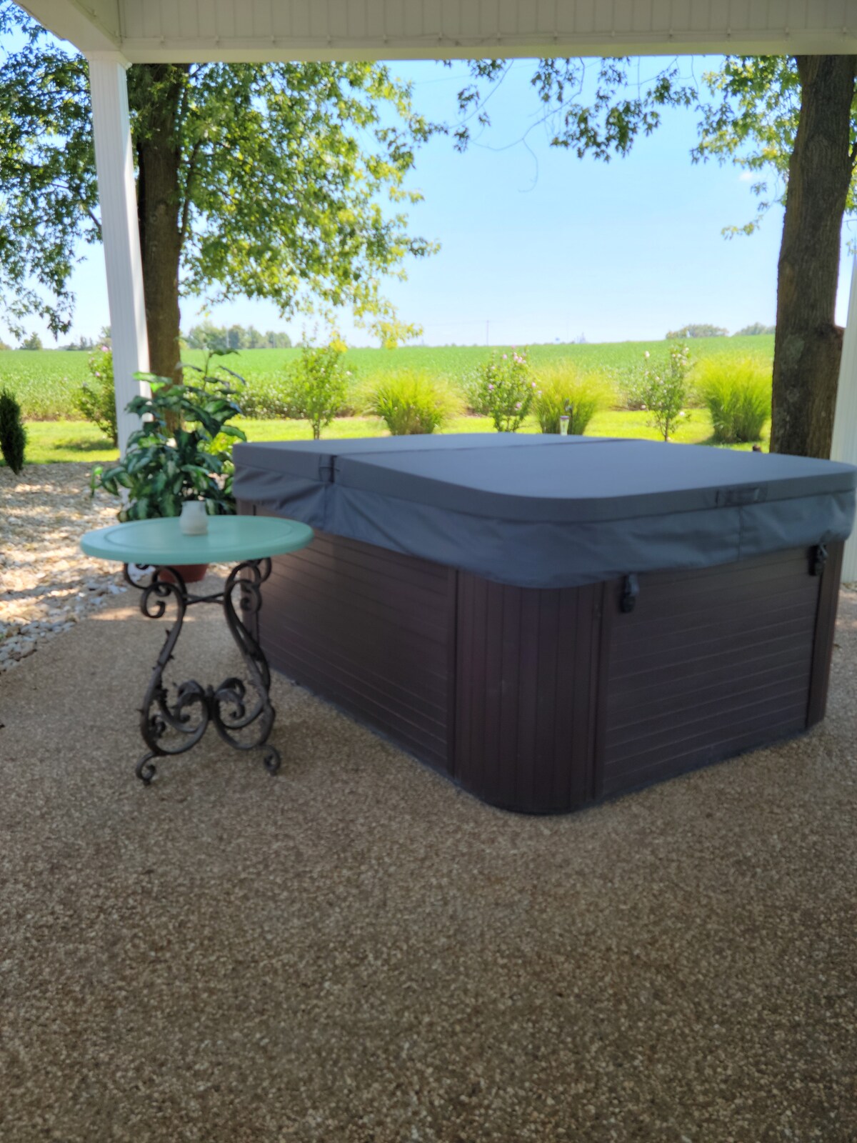 CASA PEQUEÑA. Tomate un descanso y relajate en esta casa pequeña tranquila y romántica con vistas al campo. Para calentarte y sentarte en el porche delantero, ¡no hay problema, ya que el aire acondicionado central te espera adentro! ¡Perfectamente romántico para dos! Heladera grande, lavavajillas, cama queen. Definitivamente tuve que incluir un baño pequeño con ducha de tamaño completo.
