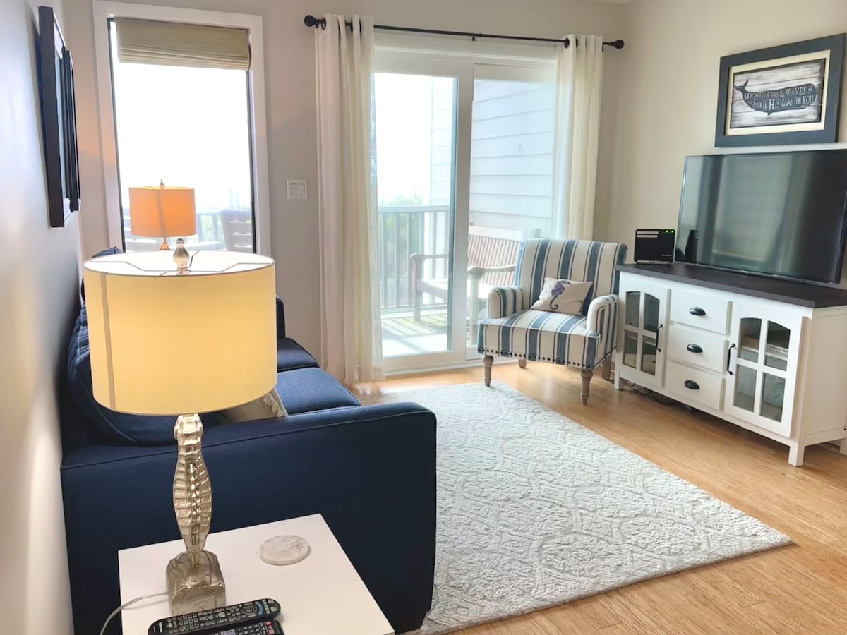 The pool is open for the 2026 season! See the ocean from the living room, master bedroom, and balcony. Two pools, gazebos, charcoal grills, & other great amenities. Condo is on the second floor of the B building (no elevators). Rental rates do not include fees and taxes added by Airbnb. Parking for two vehicles only - no trailer parking allowed. Ideal Retreat for Travel Nurses: Just 20 minutes from Carteret Health Care. All utilities and parking are included. Special rates available.