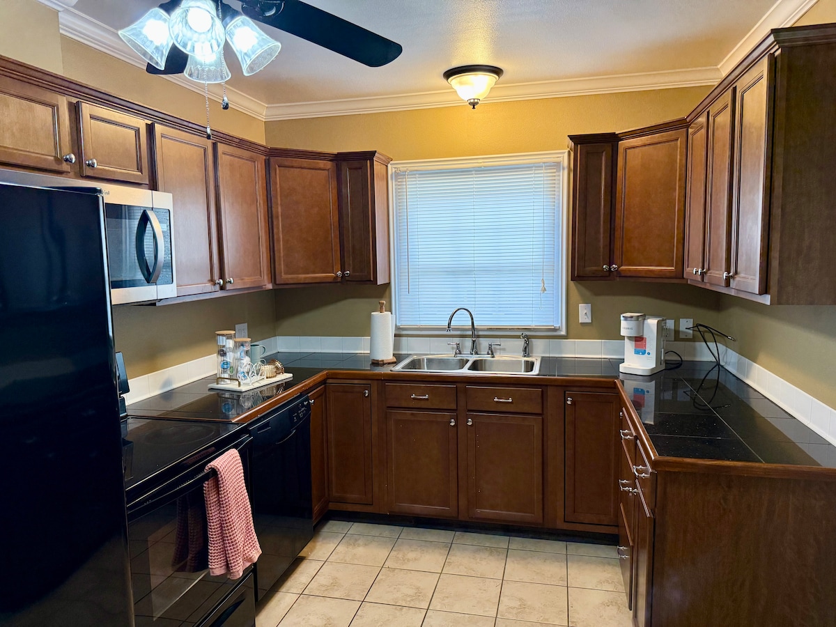 Nuestro departamento recientemente renovado tiene todo lo que necesitás para disfrutar de un buen viaje al sur de Luisiana. La cocina y el baño están equipados con ollas, sartenes, especias, cubiertos, utensilios, platos e incluso artículos ligeros para el desayuno. El baño tiene todas las toallas y artículos de tocador disponibles. Nuestro departamento está ubicado arriba de nuestra cochera, pero tiene su propia entrada privada junto con su propio sistema de aire acondicionado/calefacción. Nuestro espacio tendrá capacidad para 5 personas cómodas. Ofrecemos una máquina de hielo para ayudar con esos viajes de pesca y viajes locales.