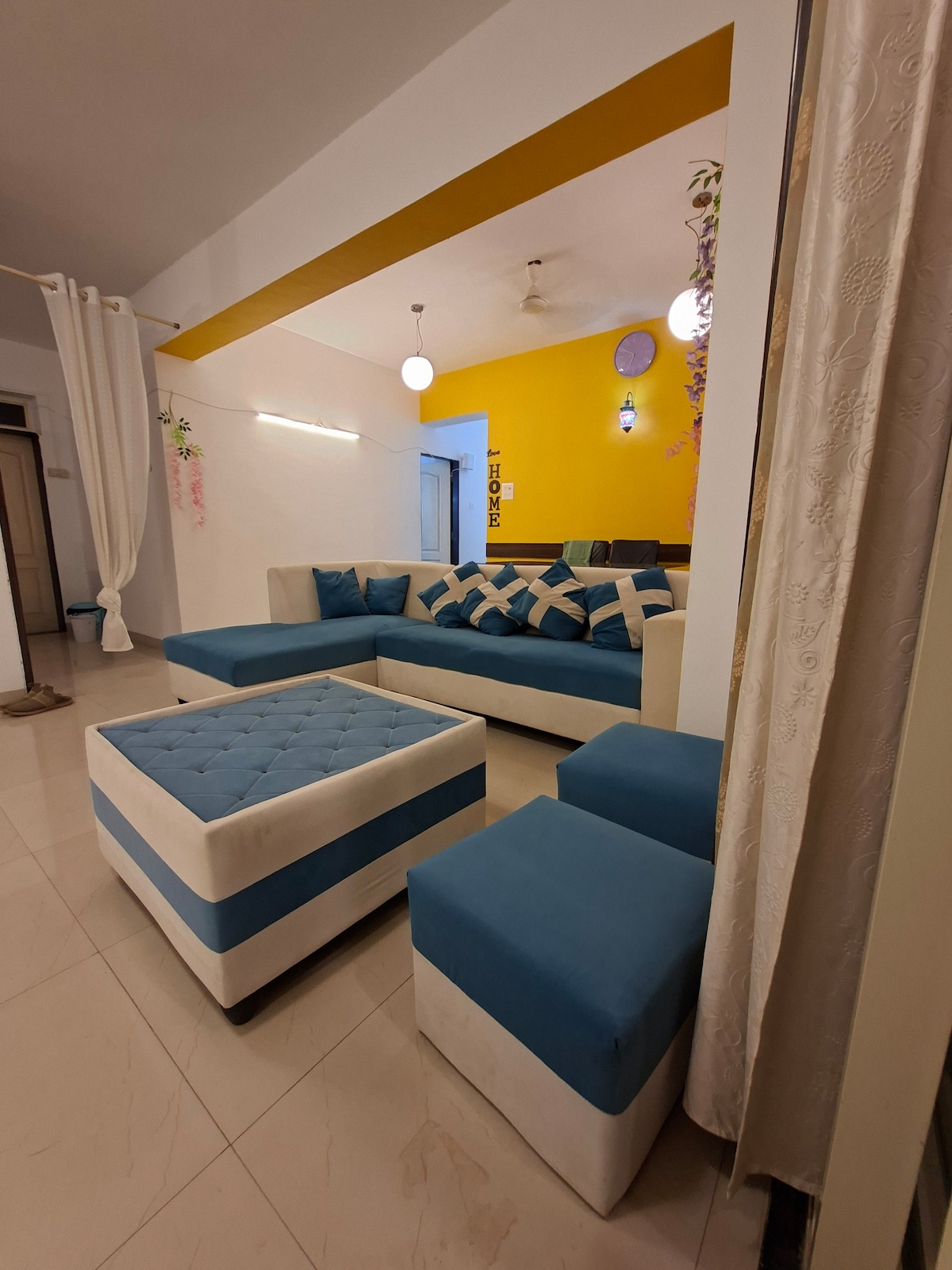 Certificado por Goa Tourism Apartamento con aire acondicionado de 950 pies cuadrados: 2 dormitorios, 2 baños, TV/sala de estar, cocina abierta; lavandería + Espacio de 500 pies cuadrados sin aire acondicionado: comedor para 4 personas; solárium; patio sombreado; balcón al aire libre. Internet de 300 mbps; 4-5 horas de energía de respaldo; Smart TV de 50"; libros; juegos de mesa; estación de trabajo y estacionamiento cubierto Ubicado en Porvorim: 15 minutos de Panaji/Mapusa; 25 minutos de Calangute/Baga; 30 minutos de Anjuna/Vagator; 45-60 minutos Ashvem/Mandrem/Arambol; 60-75 minutos en las playas del sur de Goa; 120 minutos de Palolem