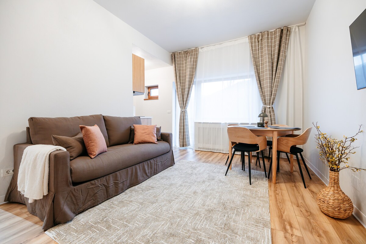 Disfruta de momentos relajantes en nuestro moderno apartamento, ubicado en el primer piso, perfecto para 4 personas. Relájate en la cama tamaño queen y admira las vistas a la montaña desde el balcón. Se beneficia de una zona de cocina totalmente equipada, baño propio, internet Wi-Fi de alta velocidad y estacionamiento gratuito en la ubicación. Ideal para unas vacaciones tranquilas o una escapada familiar, este apartamento te ofrece toda la comodidad que necesitas, rodeado de la belleza de la naturaleza.