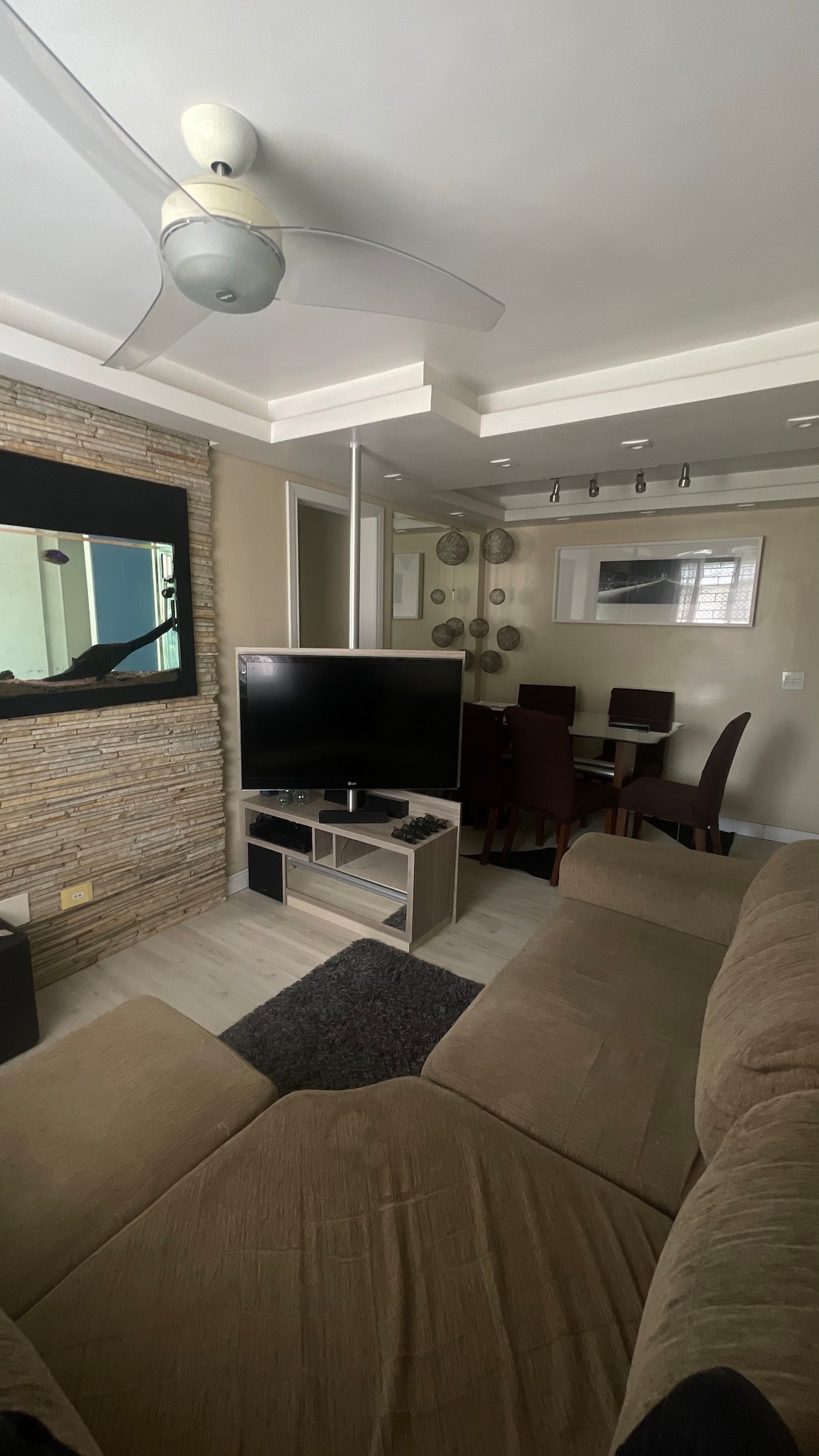 This modern apartment is located in one of the noble areas of Curitiba in the Bacacheri neighborhood, as well as being next to the food market Cadore and close to the National Supermarket, Banks, Egyptian Museum, Parks, Gym, among others. The apartment has a unique decoration with items that will make your stay even more special. The condominium has a mini market, covered garage, shared areas such as swimming pool, gym, gourmet area, pet space, etc. Come and check!
