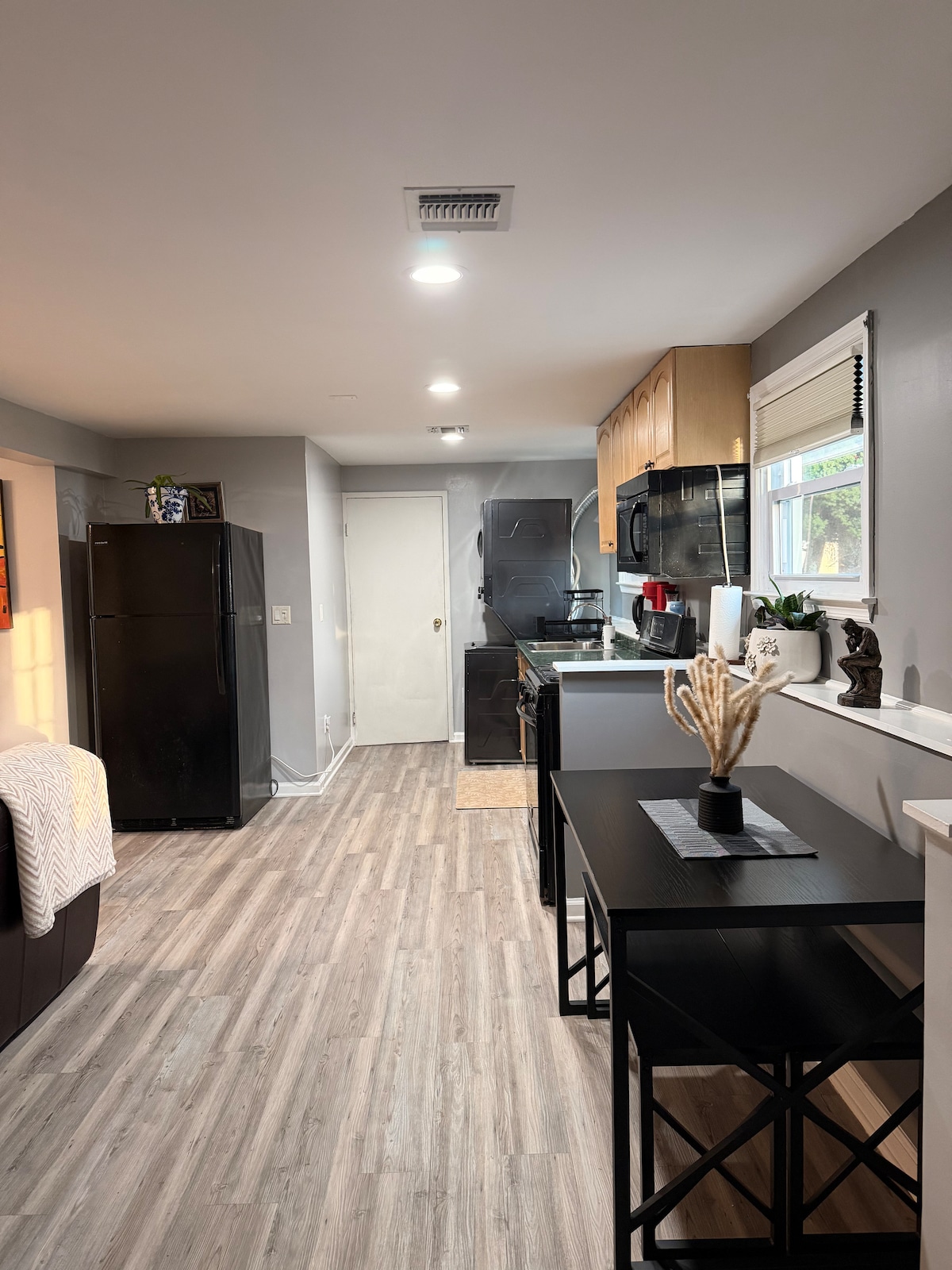 Este estudio de estilo Japandi cuidadosamente diseñado es perfecto para trabajar a distancia o disfrutar de una escapada tranquila. El espacio cuenta con una acogedora cama queen, un pequeño sofá y una zona de estar. Disfruta de Internet de alta velocidad, TV y un escritorio para la productividad. La suite incluye una pequeña cocina con nevera, microondas y cafetera. Situado en un barrio tranquilo y seguro, con acceso a una chimenea al aire libre en el patio trasero para relajarse. Ideal para una estancia tranquila, cómoda y productiva.
