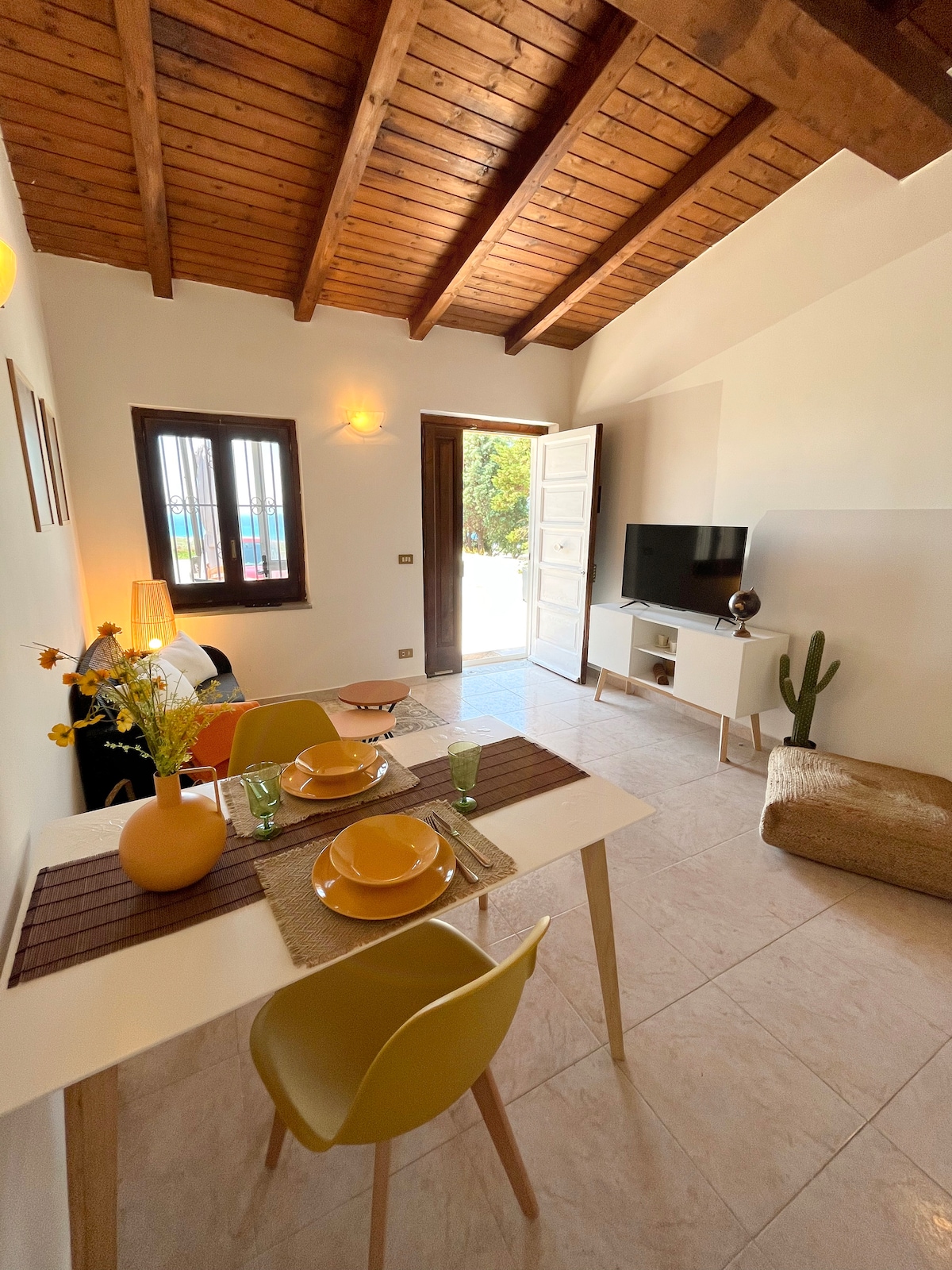 Dos ventanales frente al patio y la terraza con vistas exclusivas al golfo de Squillace. Una explosión de azul cielo-mar y blanco y piedras a la vista y, para momentos especiales, la posibilidad de disfrutar de una pérgola romántica adicional y terrazas al aire libre con unas vistas impresionantes, directamente en el mirador. Cielos estrellados. Para los amantes de la naturaleza y la vida rural fuera de las rutas turísticas de masas. Está registrado con el código regional CIR 079117-AAT-00010 y CIN que se indica a continuación.