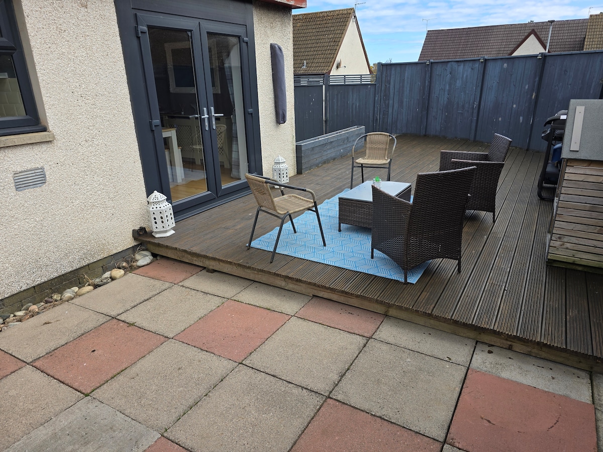 Two steps from the main square of the charming village of Fochabers, our newly refurbished and detached Duke Cottage will provide you with a comfortable private and peaceful stay while you explore the picturesque countryside. Duke Cottage includes a bedroom with king size bed and a tv, a living room with Netflix and a dining area. The kitchen is fully equipped (oven, microwave, dishwasher, Nespresso), washing machine. The garden is fenced with patio and BBQ.