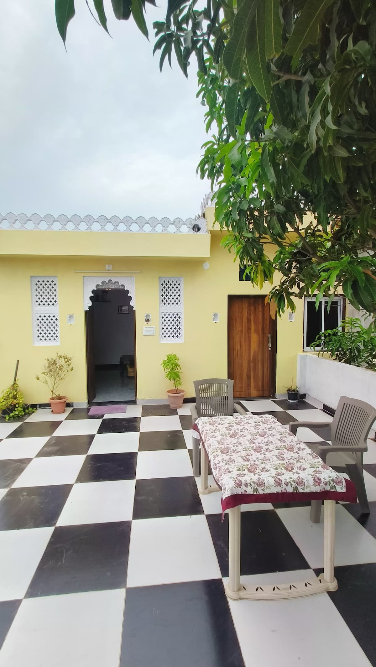 Located in a 95 year old colonial bungalow -Bedla house, this vibrant two bed room apartment with a private terrace and verandah is very chic, bright,well lit up space. Its a very spacious area located in city centre with all tourist attractions within 2 km range.Its easily accessible and has ample parking on site There is an inhouse restraurant in the property serving regional specialities . The hosts are always present,giving you travel recommendation.Breakfast is served in family dining room