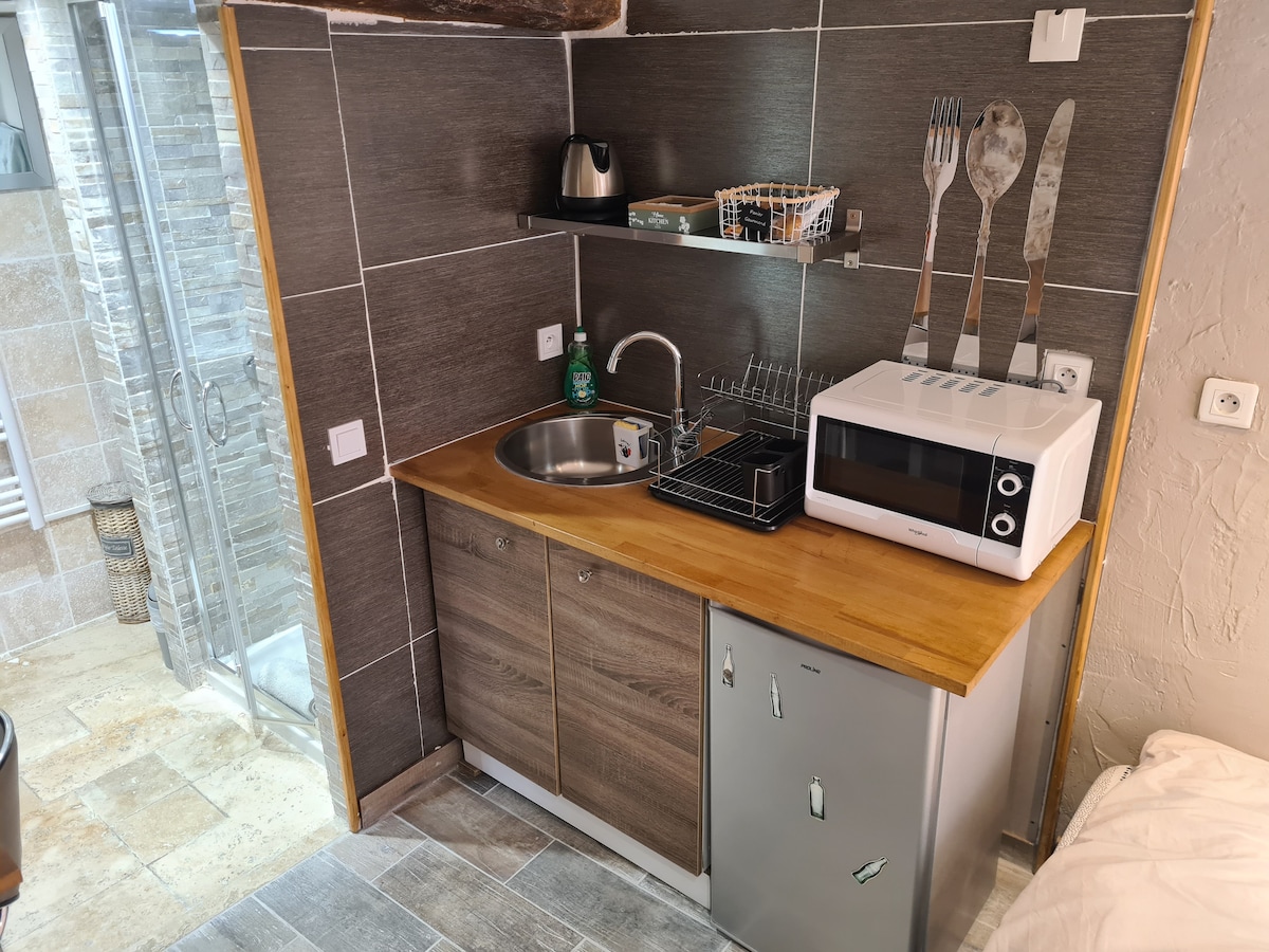 Un petit studio meublé, non-fumeurs est disponible au rez-de-chaussée de notre maison de village , idéalement situé au cœur du vieux village, donnant sur une rue piétonne. Un noiveau couchage140x190 installé en février 2026.Attention le réseau téléphonique peut être un peu perturbée tout dépend votre opérateur. Vous disposer d'une table avec 2 chaises devant le logement. Salle de bain attenante Merci de prendre en compte que la hauteur sous plafond est de 1,85 m à certains endroits.