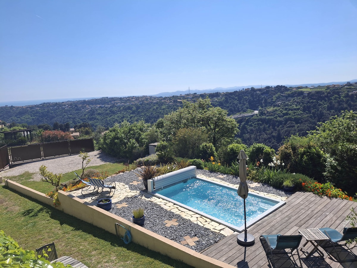 Treat yourself to a peaceful escape in our family cottage with a pool, nestled in a green haven just 15 minutes from the center of Nice. Garden, sunshine, and birdsong invite you to slow down and fully enjoy your vacation. This guesthouse was designed as a holiday retreat for our daughter and her family, to gather and enjoy the garden and the pool. Ideal for a family of 2 adults and 2 children seeking relaxation, nature, and proximity to both Nice and the sea.