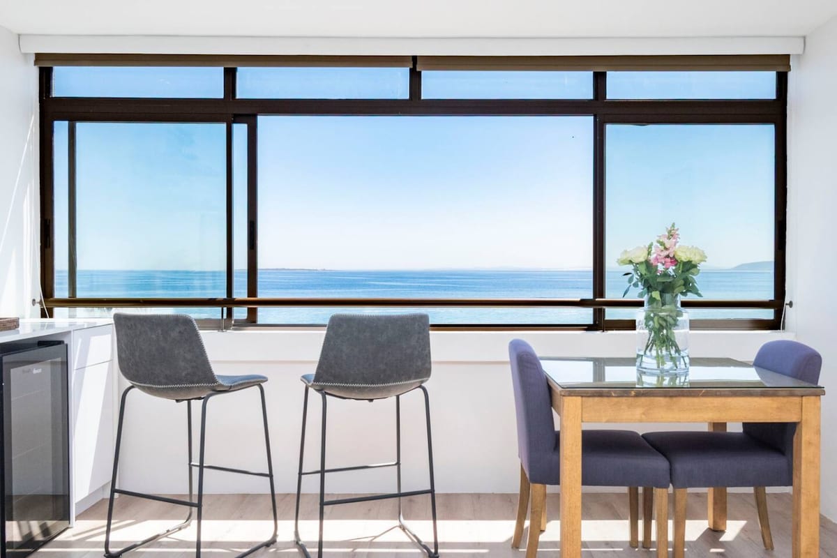 Wake up to endless ocean breezes in this elegant beachfront studio apartment perfectly positioned along Mouille Point’s iconic promenade. Situated on Beach Road, keeping you close to the Atlantic Seaboard’s vibrant dining and entertainment scene, while offering the calm and comfort of oceanfront living. ★ “Perfect location and cozy vibes!” ☞ Stunning oceanfront views ☞ Fully equipped kitchen ☞ Smart TV with streaming ☞ Secure Enclosed garage ☞ Adjacent to the Metropolitan Golf Club