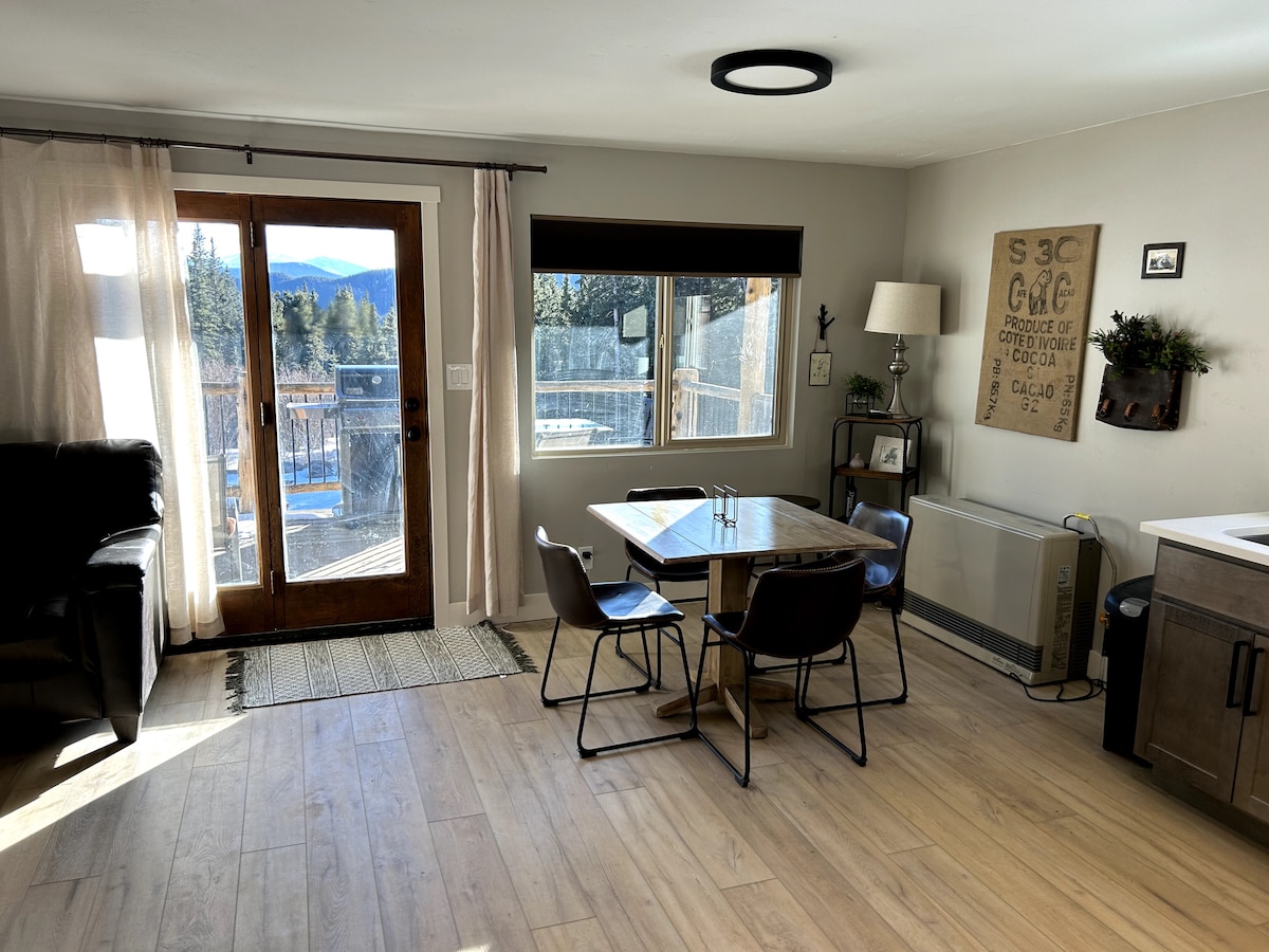 Comodidad y conveniencia sin gastos de limpieza. Nuestra suite estudio de lujo con loft está a solo media milla de todo lo que ofrece la histórica Idaho Springs Colorado. Tiendas, restaurantes y lugares de ocio están cerca, pero no demasiado cerca. Observa la vida silvestre a través de los árboles desde tu terraza privada elevada y disfruta de un fácil paseo a restaurantes, tiendas y lugares de recreación. Relájate y escucha el agua del deshielo caer por Chicago Creek y planea tu próxima aventura utilizando nuestro rápido y cómodo wifi.