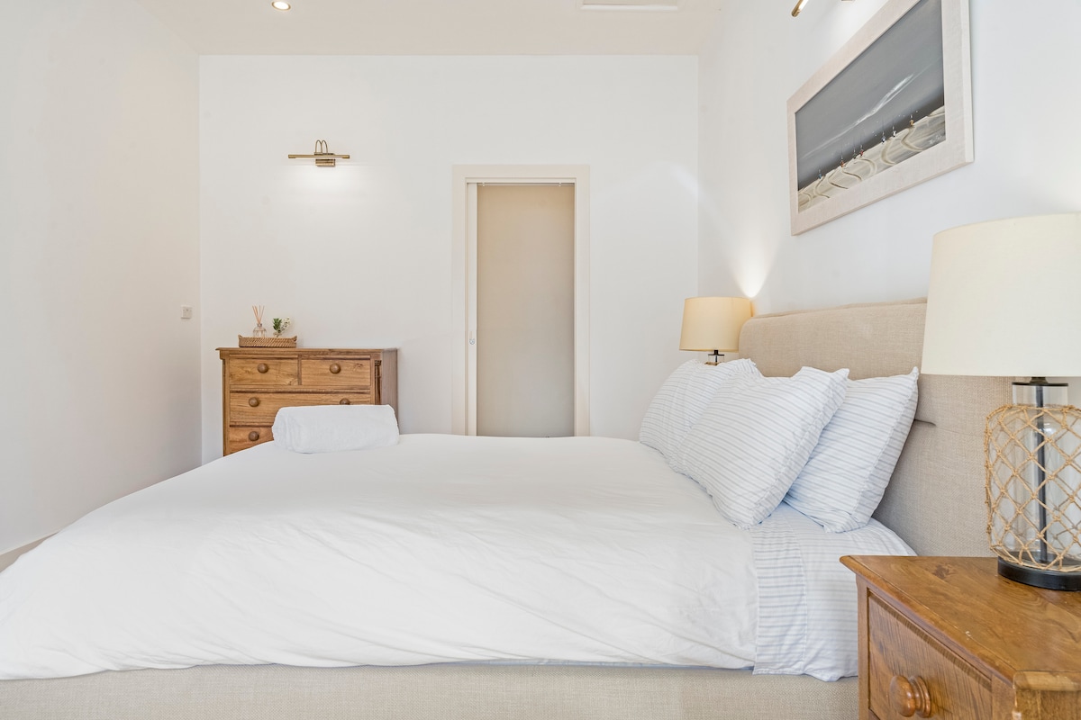 Luminoso y espacioso apartamento de 2 dormitorios totalmente independiente. Jardín privado vallado y zona de terraza. Se admiten perros en el interior. Por favor, notifícanos que vienen. Dormitorio 1: suite queen y armario doble. Habitación 2: cama doble, tocador y armario. Cocina completa con barra de desayuno y comedor, amplio salón. Cubierta con barbacoa, toldo y vistas a la bahía. La base perfecta para relajarse, explorar la península o trabajar en paz. Entrada compartida.