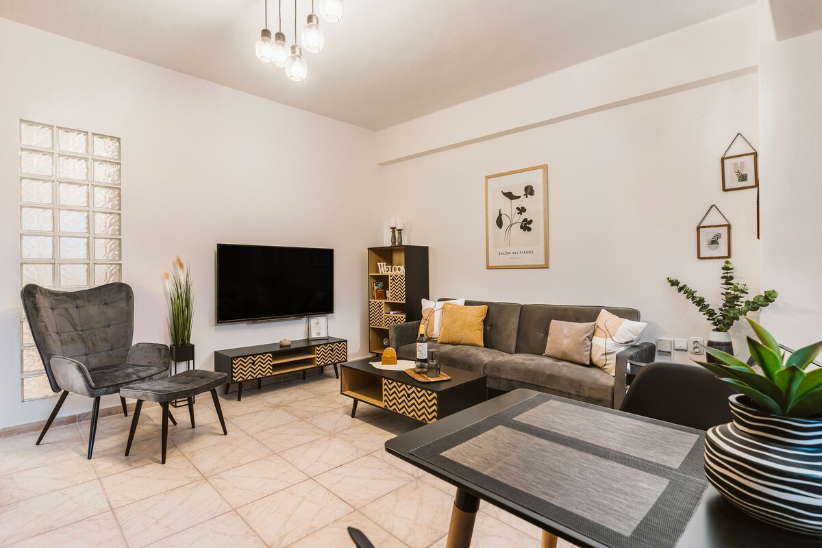 Experience the perfect blend of 60s heritage and modern minimalism. Located just steps from the Municipal Katerini's Park, this architect-designed apartment offers an escape in the heart of the city. The space has been renovated to preserve its vintage soul while providing every contemporary comfort.Whether you are here for a quick city break or as a base to explore Mt Olympus and the nearby beaches, you'll love the clean lines, the natural light, and peaceful atmosphere.
