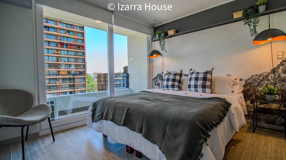 🧘♀️ Descansa en un espacio minimalista, sin ruido visual con estacionamiento gratis 🚗. Colores neutros 🎨, aromas relajantes 🌿 y limpieza sustentable 🌎. A 15 min caminando del 🎤 Movistar Arena y 🎢 Fantasilandia, a 800 m del 🚇 Metro Rondizzoni y a pasos del 🌳 Parque O’Higgins. Cuenta con cocina equipada, WiFi rápido ⚡, cama cómoda 🛏️ y un ambiente perfecto para relajarte. Ideal para conciertos, paseos o viajes de trabajo 💼. ¡Te esperamos! ✨