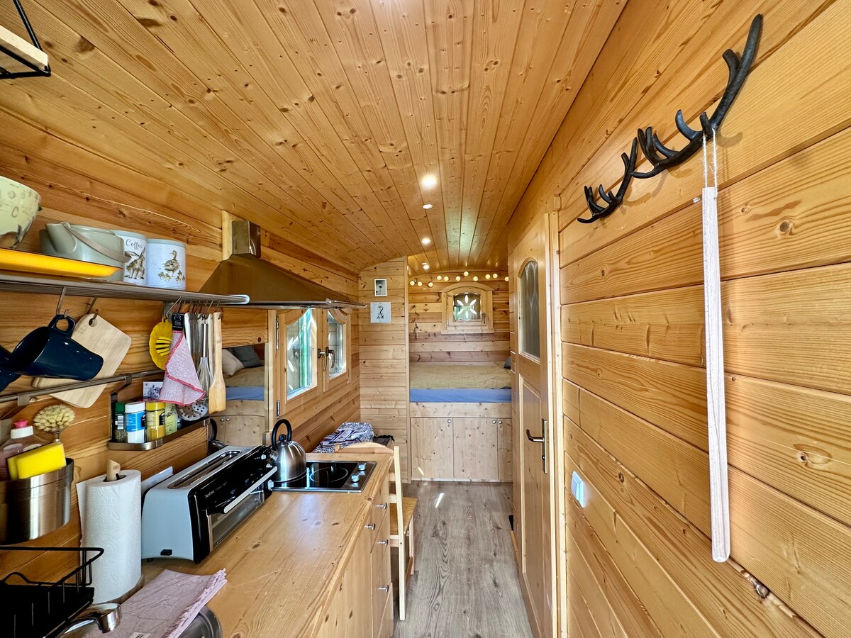 Relajate en nuestro elegante bungalow con sauna privada, bañera de hidromasaje, ducha a nivel del suelo y calefacción por suelo radiante. La cocina totalmente equipada, el dormitorio acogedor con una cama con somier y el salón diseñado con cariño no dejan nada que desear. La gran terraza con glorieta, parrilla y reposeras te invita a disfrutar. Podés caminar hasta dos lagos idílicos en solo unos minutos, perfectos para relajarte, disfrutar de la naturaleza y hacer breves escapadas.