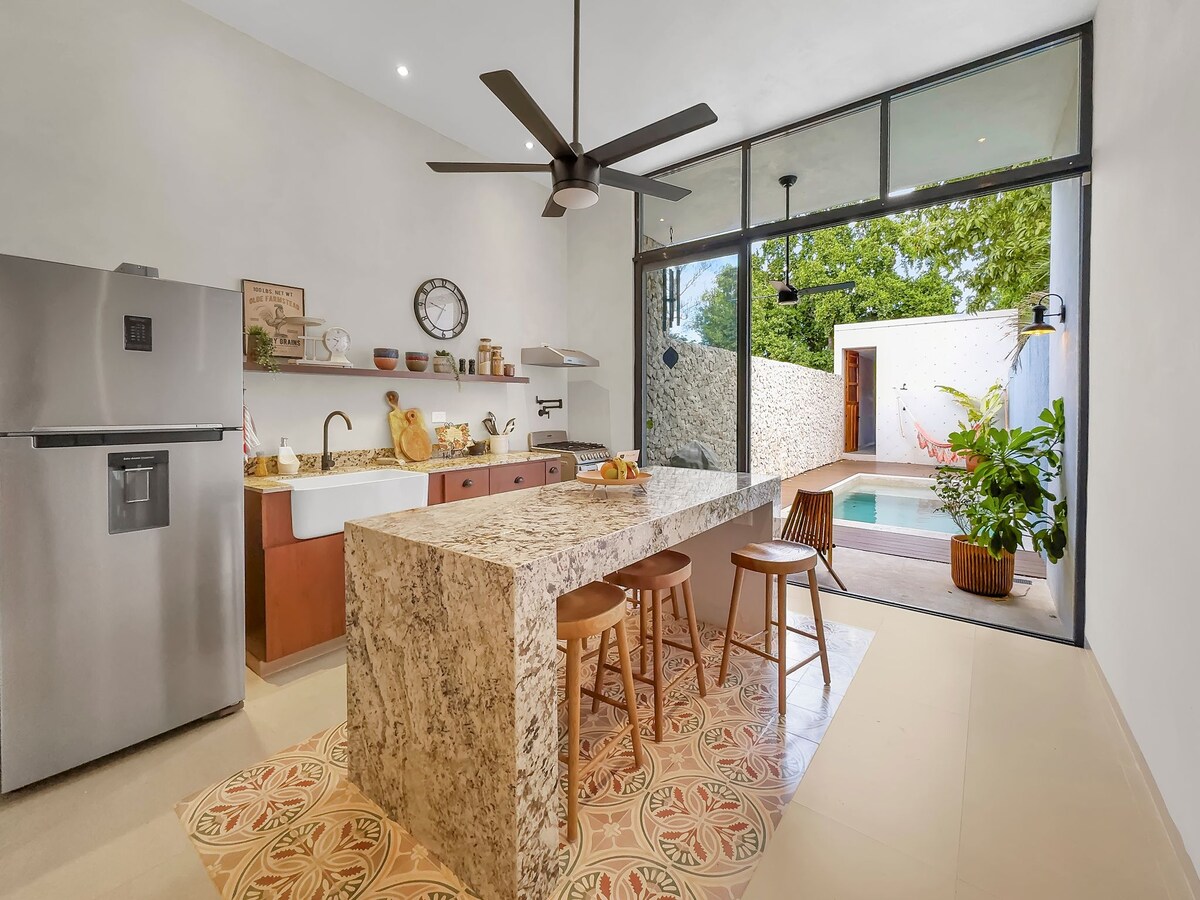 Casa Amore es una hermosa casa en el corazón de La Ermita (centro de Mérida); un barrio lleno de tradición e historia, perfectamente ubicado y con fácil acceso a plazas, transporte y comercios. Recientemente renovada, esta acogedora casa conserva el espíritu de la casa original, combinado con impresionantes acabados nuevos y comodidades modernas. Disfrute de toda la casa, incluida una piscina privada en el patio interior, un lugar perfecto para refrescarse y relajarse.