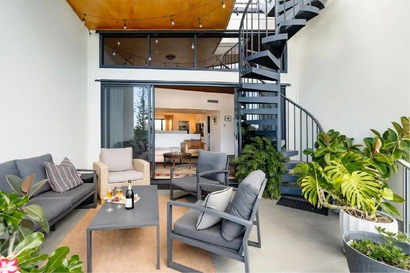 Departamento romántico frente a la playa con vistas panorámicas a las bahías de Coolum. Disfrutá de los amaneceres sobre el mar, relajate en la bañera mientras escuchás las olas o tomate un café en tu balcón privado con vista al mar. Perfecto para unos días de descanso junto al mar, este moderno refugio de diseño abierto combina lujo y comodidad en un entorno costero tranquilo. Pasea por el paseo marítimo, descubre playas escondidas y tomá un café. Relajate en la arena de First y Second Bay, a pocos pasos de tu puerta.