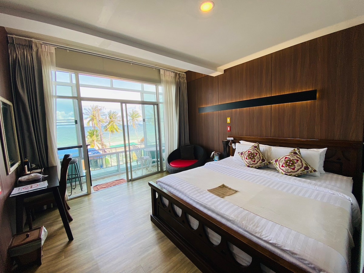 Double Room with Sea View Queen size bed, 16 sq. m. Quite and calm place with unique style. Located next to the beach with almost no people. Restaurant to keep your stomach happy. Market across the street with local food and fruits, 7-eleven and Big-C next to hotel to cover all other needs.