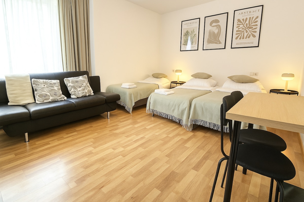 Openend in 2022 AvidonApartments is a luxury fully serviced Apartment Hotel Contactless check-in / check-out It is required to install Salto KS App which is used as a key weekly cleaning service including towels and linen free WIFI free washing machines free dryer Vending machines Ice machine Parking behind the house Electric car loading point Permit for subsidized housing available (for 90+ day stays)