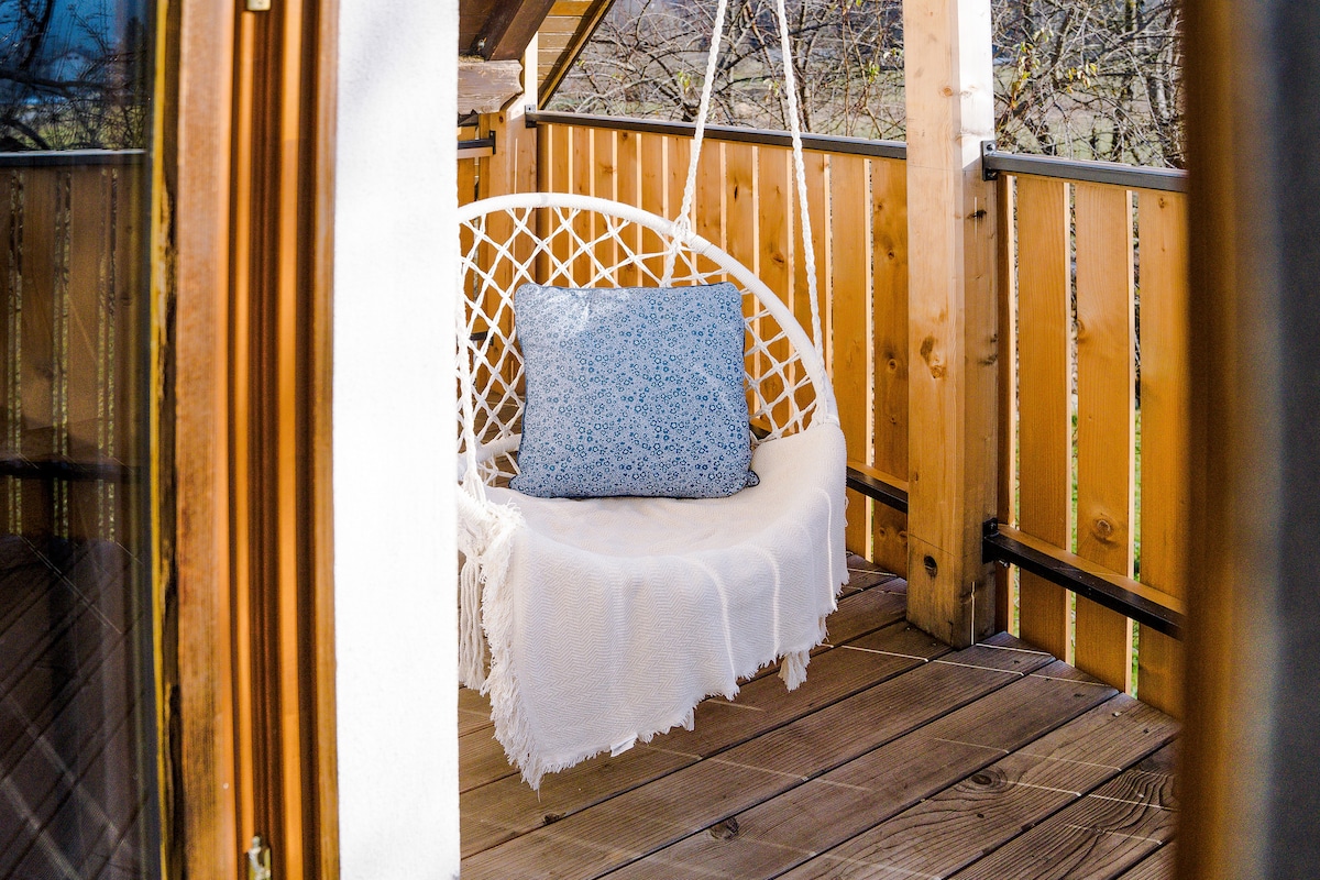 Our apartment is nestled in the peaceful village of Nomenj, situated between the iconic Bled and Bohinj. If you're seeking a relaxing place surrounded by nature - this is the ideal place for you. The apartment is located in a 2nd floor of a house and features a spacious garden with play equipment for children and an outdoor fitness area. Nearby, you will find the Grmečica waterfall, and Sava River - perfect for cooling off on warm days. Our family lives in the apartment in the 1st floor.