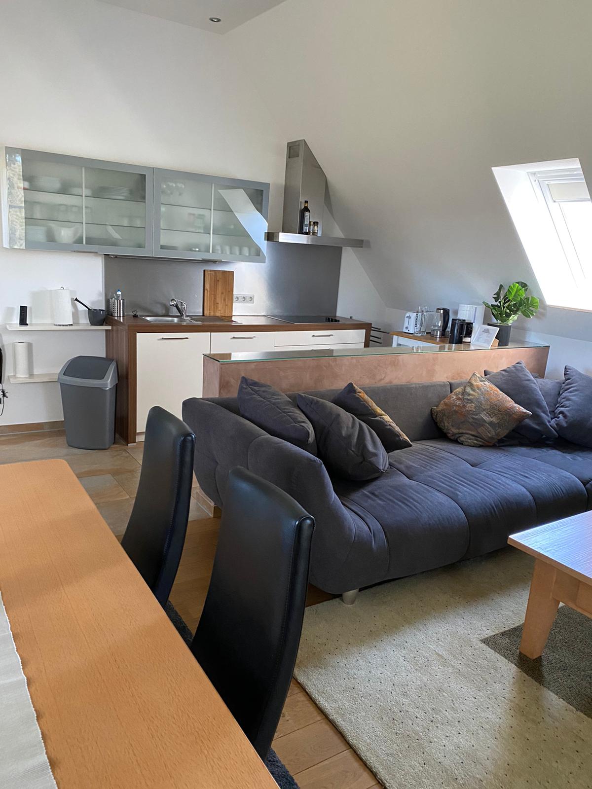 Entrar y sentirse bien. La moderna y cómoda unidad residencial con entrada independiente, 2 dormitorios separados (grandes camas dobles), una cama con somier 180x200 en la sala de estar, una cocina totalmente equipada con sala de estar contigua y 2 baños, el n.º 1 con ducha y WC y el n.º 2 con WC, bidé, urinario y bañera. Perfecto para relajarse y recargar las pilas, incluye 2 terrazas. Puedes reservar directamente un servicio de entrega de desayuno (por favor, pregunta).
