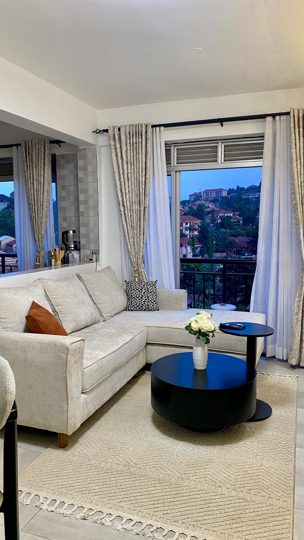 Tu moderno departamento con servicios de 1 dormitorio con balcón con vista a la ciudad ubicado en un edificio moderno y seguro cerca de la carretera principal, a pocos minutos de acogedoras cafeterías cercanas, tiendas de comestibles, mercados locales, convenientemente rodeado de lugares de comida y supermercados las 24 horas para todas tus necesidades nocturnas, una oficina de divisas totalmente operativa las 24 horas y cajero automático en Bunga/ Buziga Rd Kampala. Es perfecto para parejas, viajeros de negocios o familias pequeñas que buscan una estadía relajante y cómoda. -DISEÑADO PARA TI-