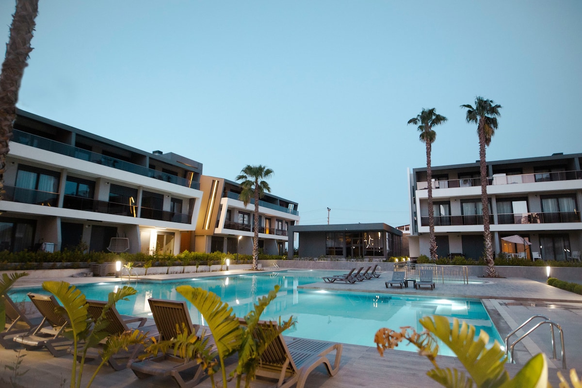 Te damos la bienvenida a RÜZGAR LUXURY y a este lujoso apartamento en nuestra excepcional residencia, que ofrece todo lo que necesitas para disfrutar de una gran estancia en Antalya. -> Dos grandes piscinas al aire libre y dos piscinas más pequeñas para niños. -> Vista al mar posible (no en todas las unidades) -> Incluye espacio de estacionamiento subterráneo gratuito. -> TV inteligente grande -> 2 dormitorios con 4 camas cómodas, 1 sala de estar. -> Ubicación céntrica, cerca de la playa (Lara Beach) y el aeropuerto. Perfecto para familias y viajeros de negocios