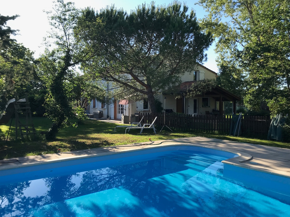 Beautiful house with pool & jacuzzi located north of Toulouse, with big deck made of exotic wood, dominating a private lake The house is surrounded with wide wooded garden (2000m2) A secured parking lot (100m2) is accessible for the guest The access is a private road, common with 3 other houses It is very quiet with no direct view on Neighbours Fabrice & Sophie will be happy to share their little paradise Optional (contact us) -Jacuzzi -Large extra suite -Weekend extension Arr. 2pm - Dep. 6pm